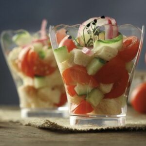 Eleganckie pudełko na makaroniki wykonane z wysokiej jakości przeźroczystego tworzywa sztucznego z tekturową wkładką w kolorze żółtym z nadrukiem w postaci kółek. Doskonale nadaje się do pakowania różnego rodzaju ciastek np. makaroników czy herbatników.