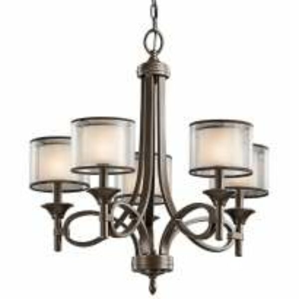 Żyrandol LAMPA wisząca KL/LACEY5 MB Elstead KICHLER metalowa OPRAWA rustykalny ZWIS na łańcuchu brązowy biały
