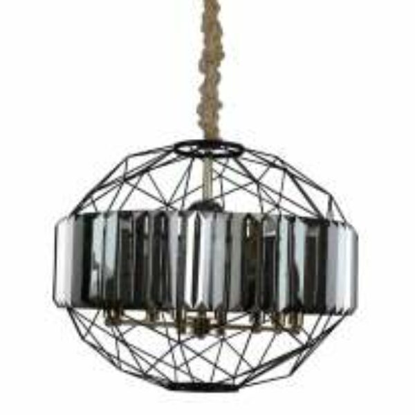 Wisząca LAMPA loft TREGLINO JD8326-8 BL Auhilon okrągła OPRAWA klatka ZWIS metalowy kryształki crystals czarna złota szara
