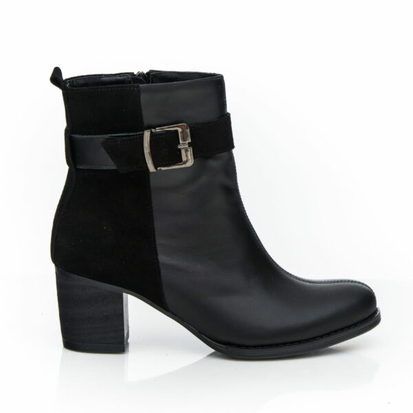 ocieplane botki na obcasie - skóra naturalna - model 494 - kolor czarny + czarny welur