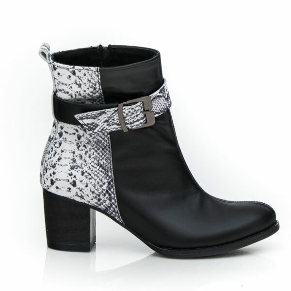 ocieplane botki na obcasie - skóra naturalna - model 494 - kolor czarny + biały wąż