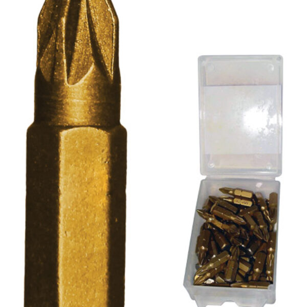 Zestaw bitów (POZIDRIV). Zastosowano stal CR-V. Certyfikat GS. Pakowane po 50 szt w plastikowym pudełku.