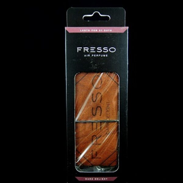 Fresso Fresso Dark Delight ZawieszkaFresso Dark Delight - to drewniana zawieszka zapachowa do samochodu z plecionym sznurkiem. Dzięki wykorzystaniu naturalnego materiału, każda zawieszka jest unikalna ponieważ jej wzór tworzą słoje drewna. Dark Delight to intensywny i wytrawny zapach który spodoba się mężczyznom oraz pewnym siebie kobietom. Przeważają nuty drzewne, osłodzone karmelem z dodatkiem kwiatów róż i magnolii.Rozmiar 11,5 x 5cmCena za 1 sztukę