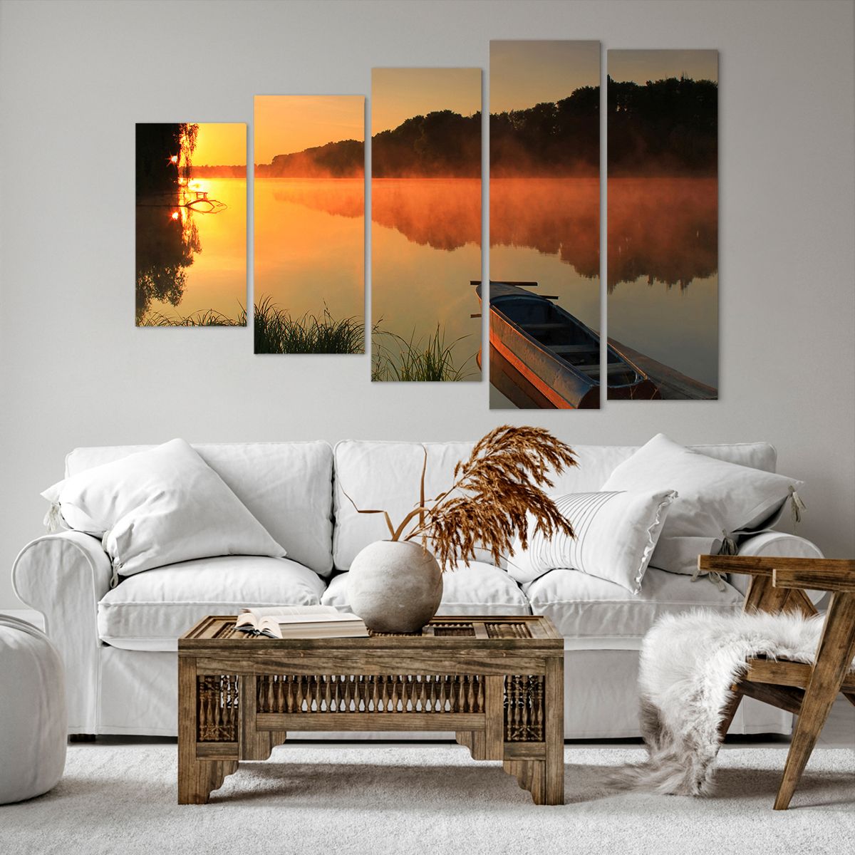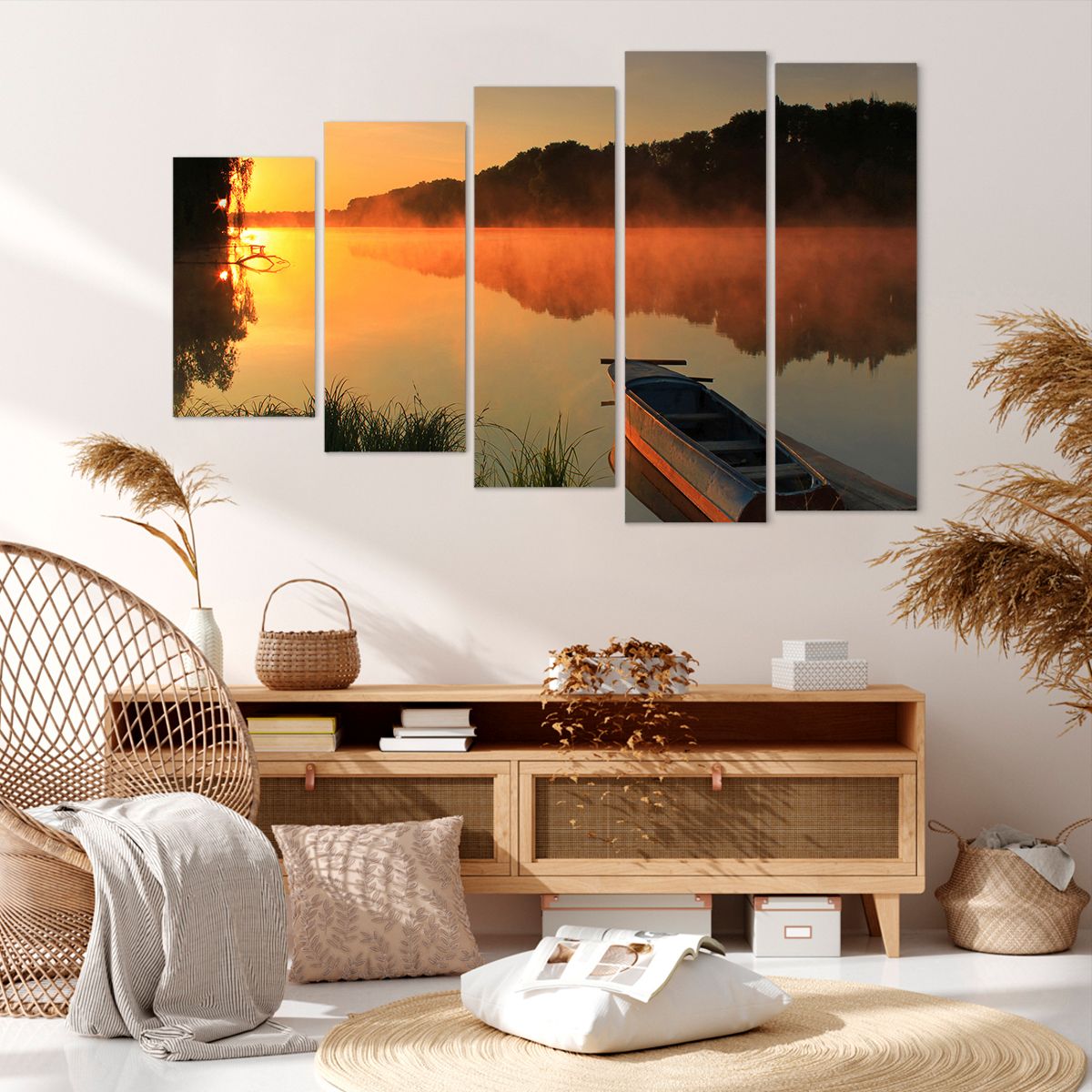 Obraz na płótnie - Wschód słońca nad wodą jak tafla lustra - 150x100 cm (5 elementów) typ EG