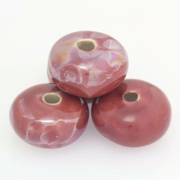 Oponki ceramiczne, porcelanowe, pełne, wypalane w wysokiej temperaturze. Bardzo dobrej jakości - nie odpryskują, nie kruszą się. Dzięki kilkukrotnemu wypalaniu charakteryzują się bardzo wysoką odpornością na uszkodzenia. Koraliki są wykonane ręcznie, toteż istnieje możliwość niewielkich różnic w rozmiarze.