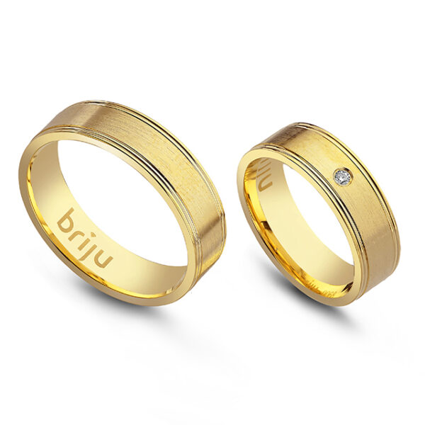 PARAMETRY OBRĄCZEK:Szerokość: 5 mm (należy do najczęściej wybieranych przez naszych Klientów)Grubość: 1,6 mmProfil: płaski, krawędzie schodkowaneWykończenie: matowe (lekko szczotkowane)Ważne: prezentowana cena tego modelu nie zawiera kamieni (cena obowiązuje dla gładkiej obrączki bez kamieni). Zdjęcie ma charakter poglądowy.Obrączki ślubne są jednym z najważniejszych elementów każdej uroczystości ślubnej. Wybieramy je na całe życie, nosząc na palcu jako symbol trwałego i szczęśliwego małżeństwa. Klasyczne, złote obrączki to wciąż najpopularniejszy wybór wśród nowożeńców. Wykonane z dobrego jakościowo tradycyjnego żółtego złota (próba 585), gwarantują długowieczność i odpowiednią wytrzymałość.DLACZEGO WARTO DOKONAĆ ZAKUPU OBRĄCZEK U NAS:Próba złota 585 gwarantuje, że obrączki są bardzo trwałe i wytrzymałe przez wiele lat użytkowania,Płaskie złote obrączki ze schodkowym brzegiem i matowym, lekko szczotkowanym wykończeniem przepięknie prezentują się na palcu i stanowią najpiękniejszą częś