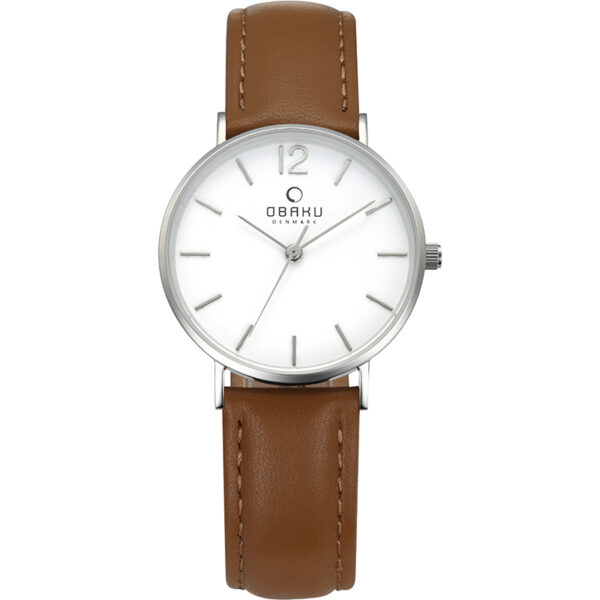Rodzaj zegarka: DamskiPasek / bransoleta: PasekMechanizm: KwarcowyFunkcje: BrakKształt koperty: OkrągłaKolor tarczy: BiałyKolor paska: BrązowyKolor koperty: StalowyOpis tarczy: Indeksy i cyfry arabskieMateriał wykonania: Stal szlachetnaWodoszczelność: 3 ATMSzkło: MineralneKamienie: Bez kamieni