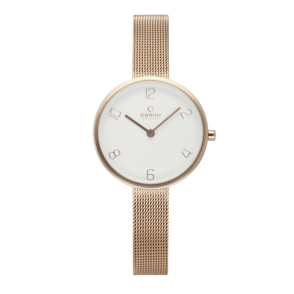 Rodzaj zegarka: DamskiPasek / bransoleta: Bransoleta meszowaMechanizm: KwarcowyFunkcje: BrakKształt koperty: OkrągłaKolor tarczy: BiałyKolor paska: Różowe złotoKolor koperty: Różowe złotoOpis tarczy: Cyfry arabskieMateriał wykonania: Stal szlachetnaWodoszczelność: 3 ATMSzkło: MineralneKamienie: Bez kamieni