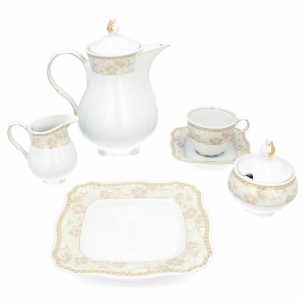 Filiżanka 12 szt. Spodek 12 szt. Imbryk 1 szt. Talerz na ciasta 1 szt. Cukiernica 1 szt.