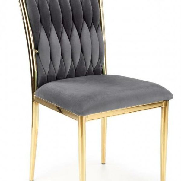 Nogi ze stali chromowanej w kolorze złotym, obicie wykonane z wysokiej jakości welurowej tkaniny, stanowić będzie eleganckie uzupełnienie wystroju salonu lub jadalni