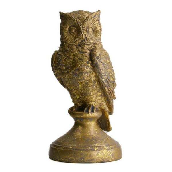Wykonana z polyresinu sowa, dekoracyjna figurka do domu i ogrodu w kolorze w kolorze postarzanego złota w stylu vintage o wymiarach: 21x11 cm