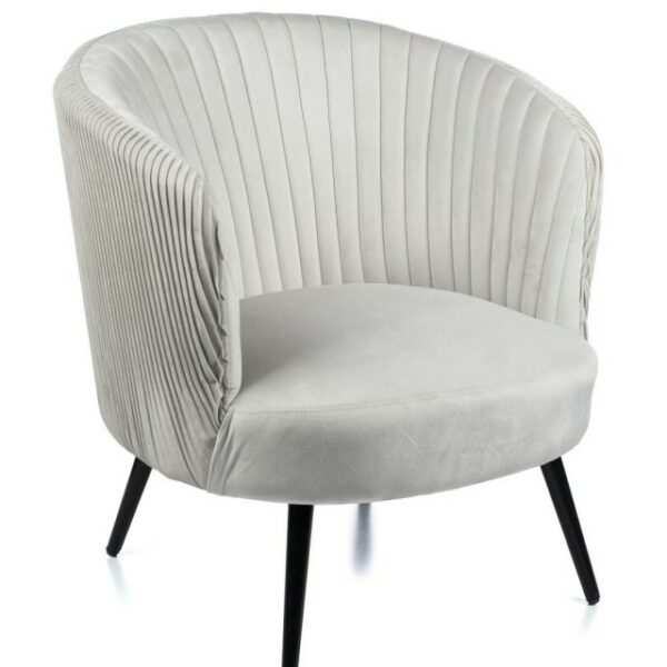 Wygodne siedzisko, wykonane z przyjemnej w dotyku tkaniny w kolorze szarym, stabilne nóżki wykonane z metalu w kolorze czarnym.
