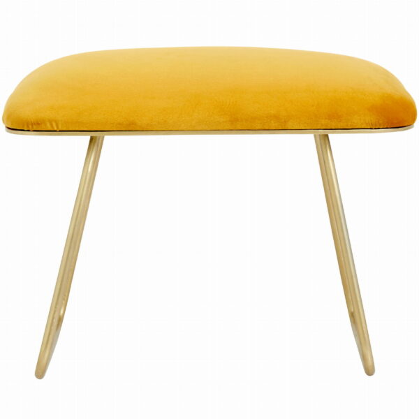 Taboret aksamitny Warm to praktyczny, funkcjonalny, ale również dekoracyjny mebel. WARM to minimalistyczny i elegancki taboret duńskiej marki Nordal, który możesz wykorzystać na kilka sposobów. Sprawdzi się on jako dodatkowe siedzisko, ławeczka w holu, czy też podnóżek. Dodatkowo dzięki pięknej żółtej tapicerce wprowadzi do wnętrza trochę koloru. Będzie mocnym akcentem wnętrza. Materiał: metal, MDF, obicie aksamit Wymiary: długość 62 cm, głębokość 39 cm, wysokość 40 cm Waga: 19 kg