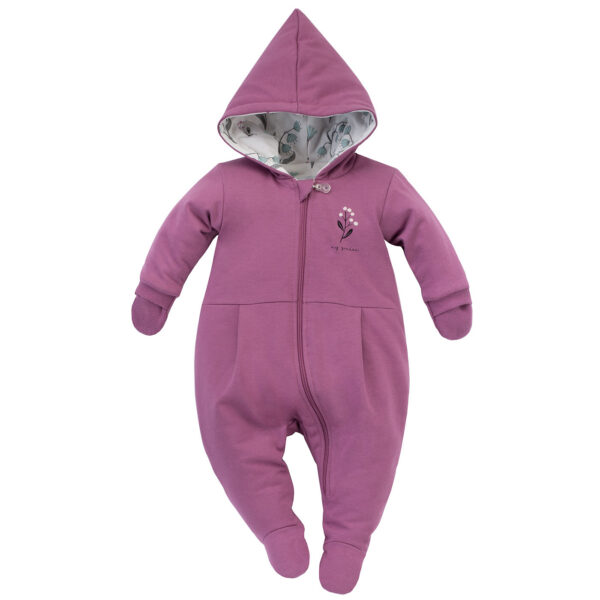 Trzywarstwowy kombinezon niemowlęcy w pięknym odcieniu różu. Z przodu w talii ma ozdobne zakładki, które dodają mu dziewczęcego uroku. Kombinezon w środku wypełniony jest ociepliną, dzięki czemu świetnie sprawdzi się jesienią i wiosną oraz w cieplejsze, zimowe dni. Rękawy zakończone są ściągaczem i rękawiczkami-łapkami, które ochronią dłonie maleństwa przed zmarznięciem. Od wewnątrz kombinezon wykończony jest bawełnianą podszewką w autorski wzór kwiatków. Z przodu na wysokości klatki piersiowej umieściliśmy kwiatuszek i napis „My Garden”. Nadruki zostały wykonane bezpieczną metodą farb wodnych. Aby ułatwić ubieranie i przewijanie maluszka, kombinezon ma wszyty wygodny suwak na całej długości. Nad piętkami umieściliśmy specjalne gumki. Uniemożliwiają one zsuwanie się ubranka ze stópek dziecka. Kombinezon to jeden z niezbędnych elementów wyprawki maluszki. Warto o nim pamiętać podczas zakupów. Skład: 100% bawełna.