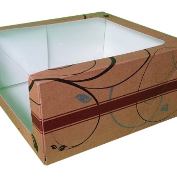 Pudełko na ciasto z okienkiem 28x28x13 cm seria ROŚLINY opak. 50 szt.