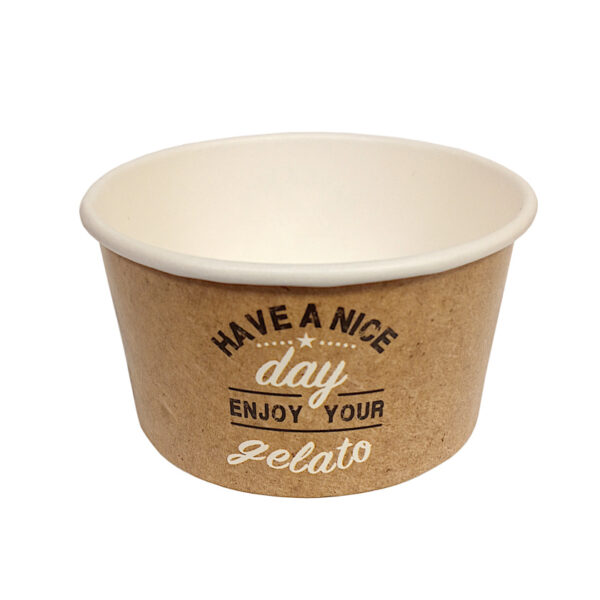 Kubek na lody wykonany z papieru nieprzemakalnego, posiadający dekoracyjny nadruk. Pojemność kubka 80 ml.Dedykowany do serwowania lodów lub deserów.Zobacz wszystkie rozmiary kubków z serii have a nice day.