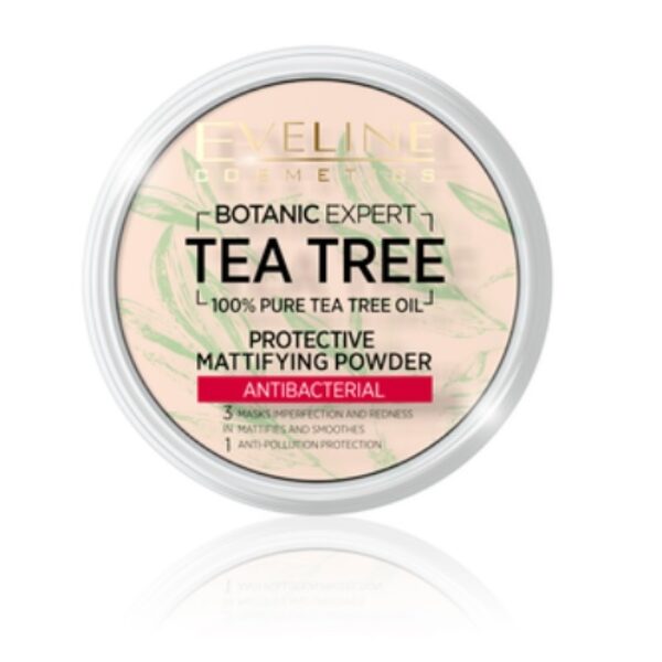 Eveline Tea Tree Puder Transparentny 01Prasowany puder do twarzy pochodzący z serii Tea Tree. Kosmetyk doskonale utrwala makijaż i matuje skórę. Wykazuje działanie antybakteryjne, stworzony na bazie olejku z drzewa herbacianego. Może być stosowany w przypadku każdego rodzaju cery. Kosmetyk maskuje niedoskonałości, wygładza skórę, chroni przed szkodliwym działaniem czynników zewnętrznych.Pojemność: 9gOdcień: 01