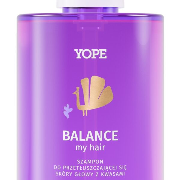 YOPE Balance Szampon do Przetłuszczającej się Skóry Głowy 300mlYope Bounce my hair to nowa seria produktów przeznaczonych do pielęgnacji włosów. W swoich formułach bazuje na adaptogenach. Seria ta charakteryzuje się wyjątkowymi zapachami i holistycznym działaniem. Jest doskonałym suplementem dla skóry głowy i włosów.Szampon do przetłuszczającej się skóry głowy z kwasami to kosmetyk, który nie tylko doskonale oczyszcza włosy i skórę głowy, ale przede wszystkim odświeża i reguluje. Szampon detoksykuje, orzeźwia, przywraca potrzebny balans i równowagę.Pojemność: 300ml
