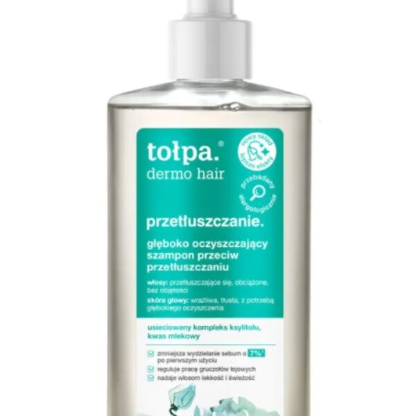Tołpa Dermo Hair Szampon Przeciw Przetłuszczaniu 250mlSzampon stworzony z myślą o przetłuszczających się włosach. Nie obciąża ich i doskonale sprawdzi się w przypadku włosów bez objętości. W swojej formule zawiera usieciowany kompleks ksylitolu oraz kwas mlekowy. Zmniejsza wydzielanie sebum już od pierwszego zastosowania. Nadaje włosom lekkość i świeżość.Doskonale oczyszcza włosy i skórę głowy. Pojemność: 250ml