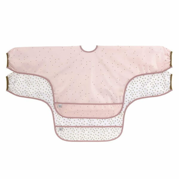 Funkcjonalne śliniaki z długim rękawem 6m+ About Friends Szynszyla Lassig polecają się dla aktywnego dziecka. Zestaw dwóch wyjątkowo łatwo zmywalnych śliniaków idelanie sprawdzi się w każdym domu w którym są małe dzieci. Posłużą długo, mają duży rozmiar, który dopasuje się do maluszka 6m+ i posłuży nawet do 24m. Wykonane zostały z wytrzymałego wodoodpornego tworzywa, w delikatnych pastelowych kolorach. Zestaw śliniaków z długim rękawem 6m+ About Friends Szynszyla Lassig: jasnoróżowy śliniak w złote kropeczki transparentny śliniak w gęsty wzór ze złotych kropeczek mają ładne obszycie w matowym odcieniu różu śliniaki są praktyczne, mają długie rękawki aby dziecko nie pobrudziło się wygodne dla malucja z miękką taśmą i wiązaniem na tasiemki dodatkowo mają na dole funkcjonalną kieszonkę, w którą może wpaść, np. jedzenie, które nie trafi do buźki dziecka niezastąpione podczas karmienia dziecka, ale też przy każdej twórczej aktywności dziecka: malowaniu, zabaw plasteliną czy prób samodzielnego przygotowania posiłku łatwe do czyszczenia, można je prać w pralce, w delikatnym cyklu i temp. max 40°C Wiek: 6-24 miesiące Wymiary: 80 x 0,3 x 36 cm Waga: 36 g Skład: 100% poliester