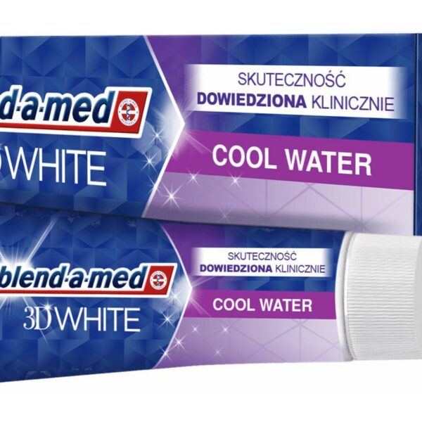 Blend-A-Med 3D White Cool Water Pasta do Zębów 75ML Pasta do zębów Blend-a-med 3D White Cool Water jest przeznaczona do delikatnego wybielania zębów. Skutecznie usuwa niepożądane przebarwienia z zębów, a przy regularnym stosowaniu wynagradza bardziej promiennym uśmiechem.wybiela zębywalczy z próchnicą zębów i osadem nazębnymusuwa kamień i osad nazębnyodświeża oddechnie ściera zębówSposób użycia: Czyść zęby dokładnie co najmniej przez 2 minuty.