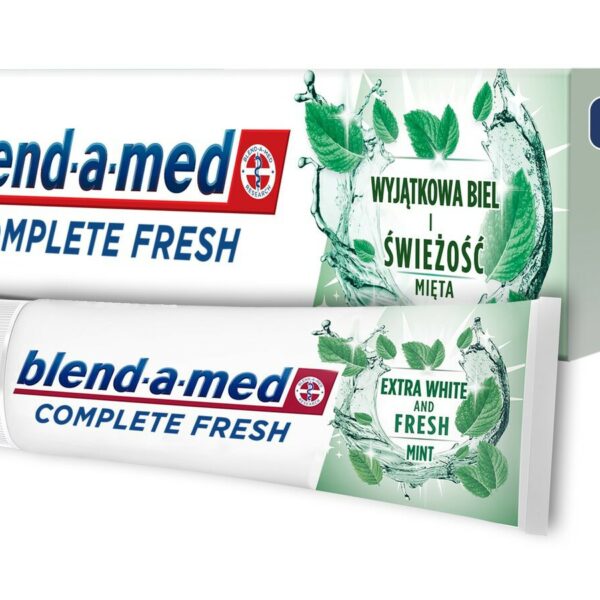 Blend-A-Med Extra White & Fresh Odświeżająca Pasta do Zębów 75MLPasta do zębów Blend-a-med Extra White & Fresh całościowo dba o Twoje zęby i dziąsła, pozostawiając przyjemnie świeży oddech.Właściwości pasty do zębów Blend-a-med Complete Fresh Extra White & Fresh:Wybiela zęby dzięki technologii podwójnej krzemionki, usuwając przebarwienia powierzchnioweOdświeża oddechZapewnia ochronę przed ubytkamiMiętowy smakSposób użycia: Wskazane jest stosowanie pasty co najmniej 2 razy dziennie, rano i wieczorem lub po każdym posiłku.