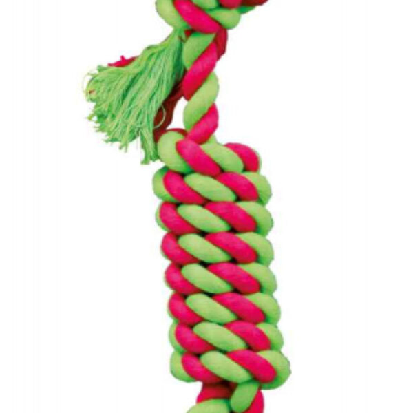 *Sznur z obręczą* idealnie nadaje się do rzucania i do zabawy w przeciąganie. Zabawka ze sznura oprócz dobrej zabawy pomaga zachować higienę zębów. Pies gryząc zabawkę oczyszcza swoje zęby z resztek pokarmowych i osadu, wypustki na obręczy masują dziąsła.