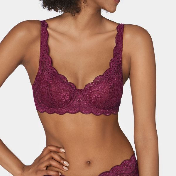 Biustonosz na fiszbinach, posiada miseczki usztywnione wkładką bawełnianą. Model pokryty elegancką koronką z motywem kwiatowym, posiada pionowe przeszycia miseczek, dzięki czemu idealnie podnosi i podtrzymuje biust. Bestsellerowy model firmy Triumph. Dostępny w kilku wersjach kolorystycznych.Skład:62% Poliamid, 18% Elastan, 9% Bawełna, 7% CV, 4% Poliester