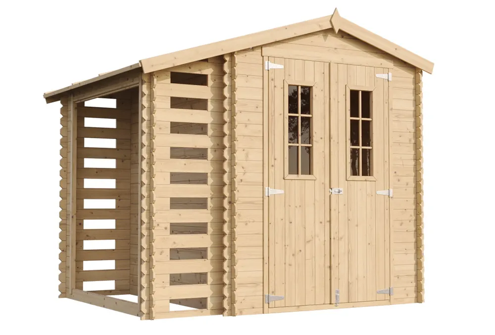 Drewniany domek ogrodowy z drewutnią Narwik 272 x 206 cm z podłogą