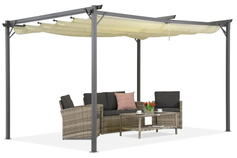 Beżowa pergola tarasowa z zasłonami La Palma 4x4 Garden Point