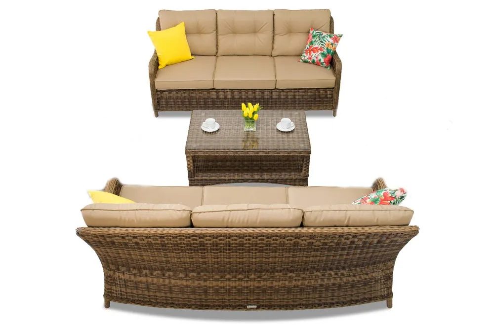Komplet mebli z technorattanu Toledo Coffee z małym stolikiem dla 6 osób brąz Garden Point