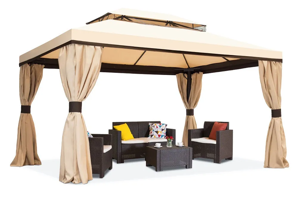 Kremowy pawilon ogrodowy z zasłonami Walencja 4x4m Garden Point